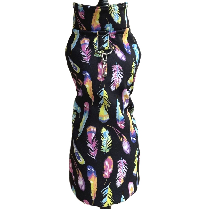 Funkční zimní softshellová pláštěnka pro psy – Barevná peříčka