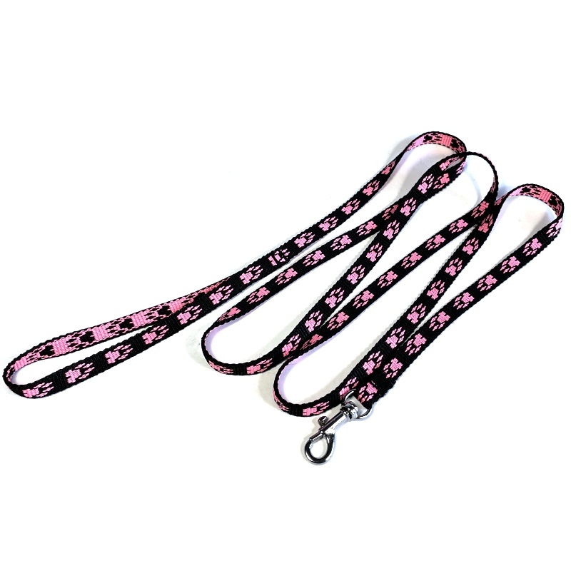Elegantní a zároveň hravé vodítko s růžovými tlapičkami na černém podkladu je navrženo speciálně pro malá plemena psů, jako jsou čivavy, jorkšíři nebo krysaříci.