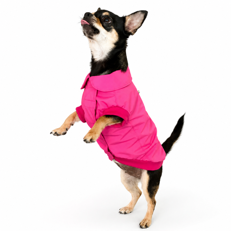 Lehká letní pláštěnka pro malá plemena s TPU vrstvou šitá na míru. Voděodolná, prodyšná a ideální do teplého deštivého počasí. Pohodlný střih, snadné oblékání a výrazná sytě růžová barva. Skvělá ochrana bez přehřívání. celý popis