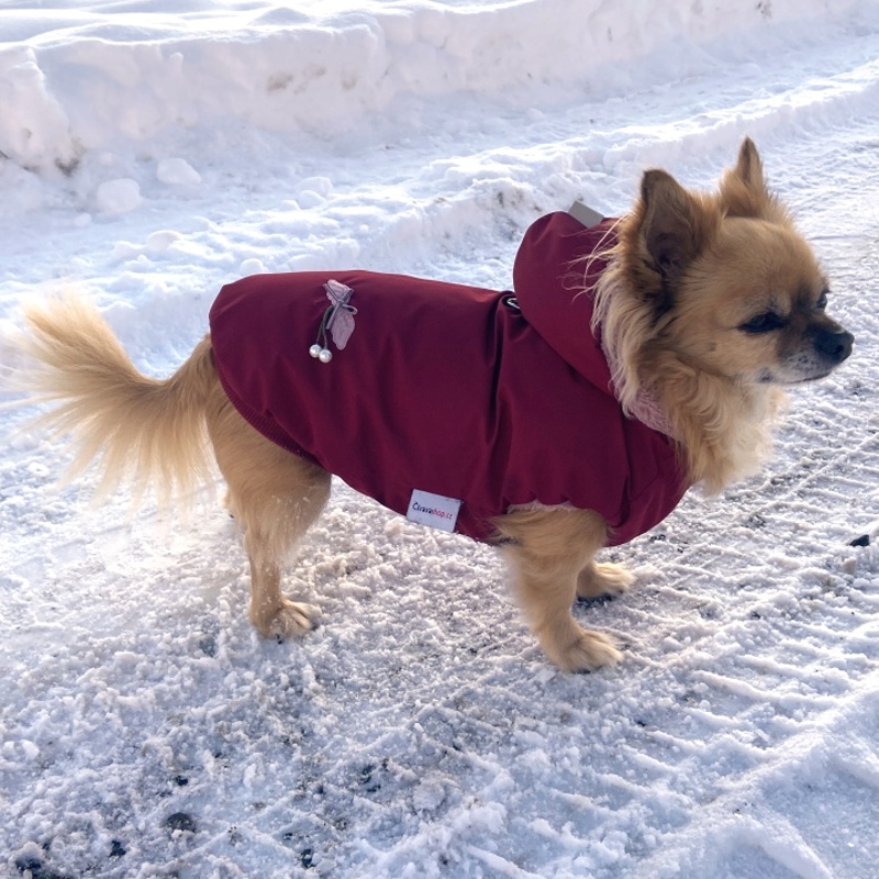 - Luxusní pláštěnka/kožíšek pro psa, bordová