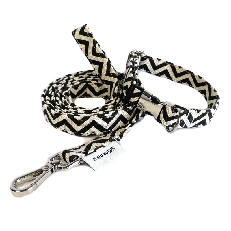 - Luxusní set obojek a vodítko smetanovočerný (šířka 1,5 cm)