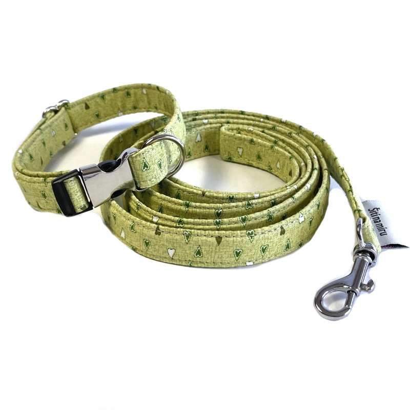 - Luxusní set obojek a vodítko zelený se srdíčkem (šířka 1,5 cm)