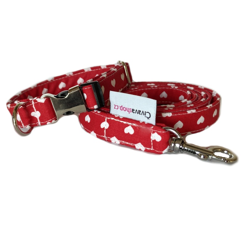 - Obojek a vodítko pro psy Azucena, červené se srdíčkem, š. 1,5cm