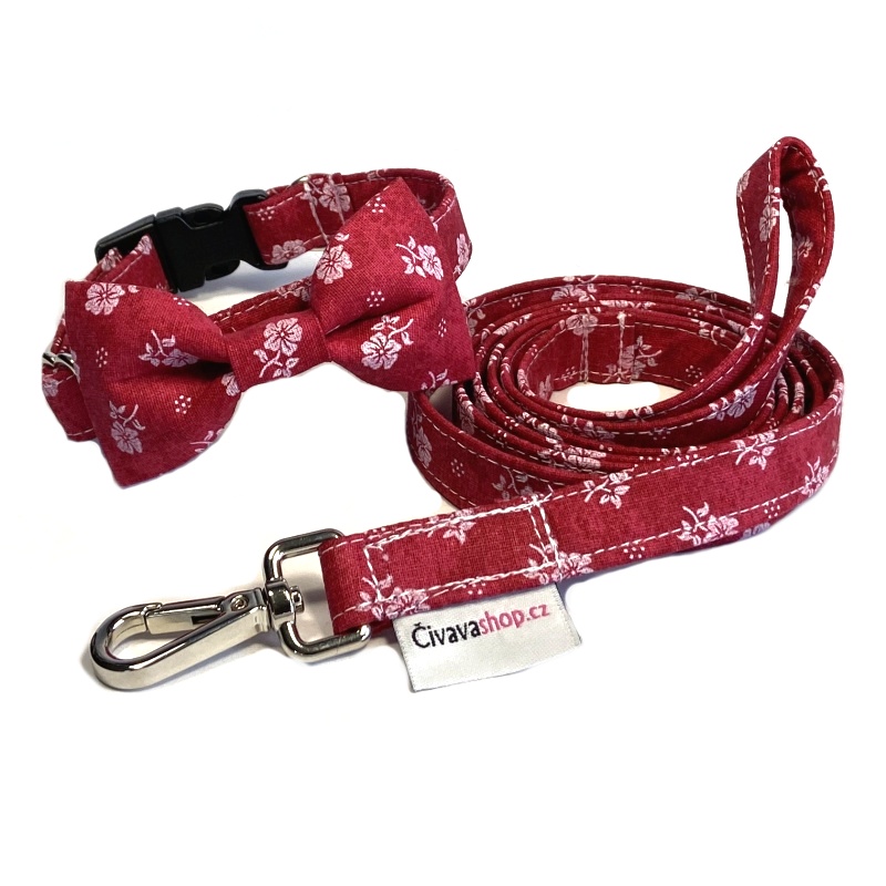 - Obojek s mašličkou a vodítko pro psy Arteaga červené kytičky