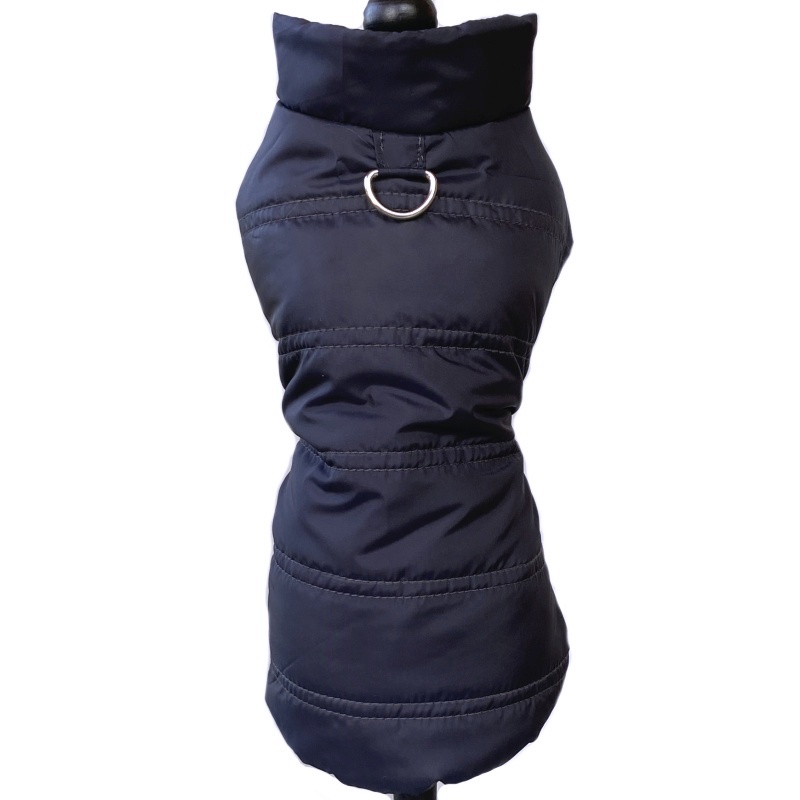 Pohodlí, styl, elegance, to jsou vlastnosti této vesty, určené spíše do města, než do terénu. Obleček je ušitý ze třech vrstev materiálů, avšak lehkých a tenkých. Vrchní vrstva je tenčí šusťákovina BEZ TPU zátěru, proto je nepromokavá pouze kratší dobu, než oblečky se zátěrem. Prostřední vrstva je tenší oděvní vatelín, a spodní vrstvu tvoří hladká saténová podšívka. Díky ní na oblečku neulpívají žádné chlupy a je vhodný i pro jorkšírky s delším vlasem