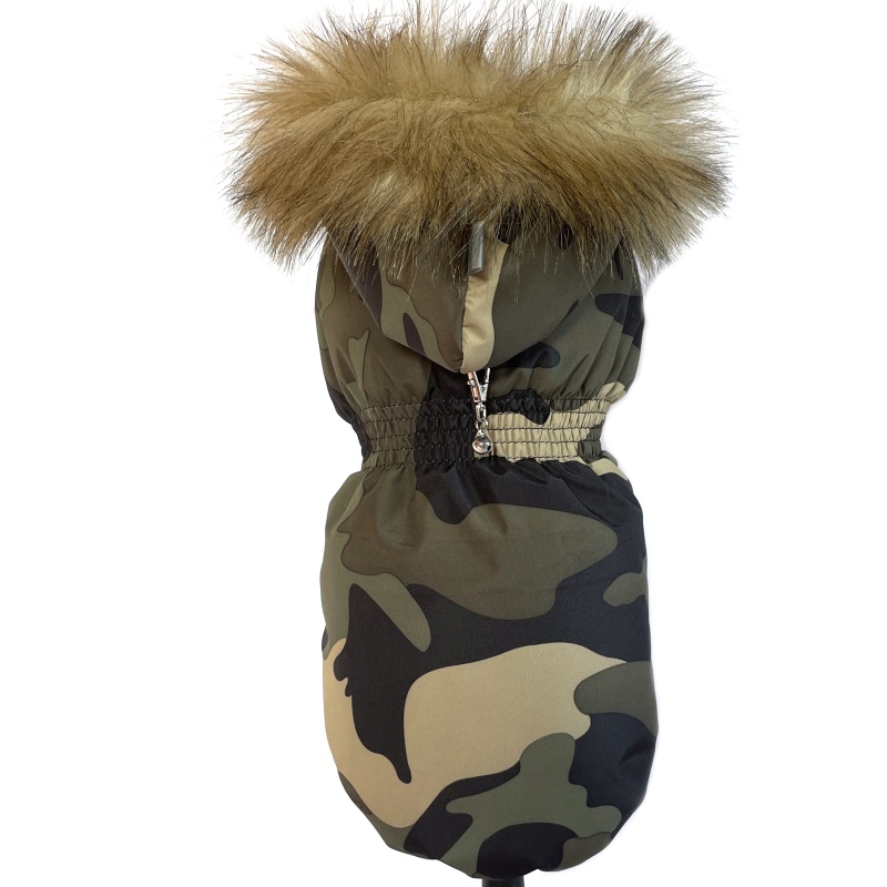 Tento zimní kabátek v khaki kamufláži je ideální pro malé pejsky, kteří potřebují během chladných měsíců maximální teplo, pohodlí a ochranu před větrem. Kabátek je zateplený hřejivým beránkem, který krásně izoluje a udržuje pejskovo tělíčko v suchu a teple i při nízkých teplotách. Je vhodný od 5°C.
